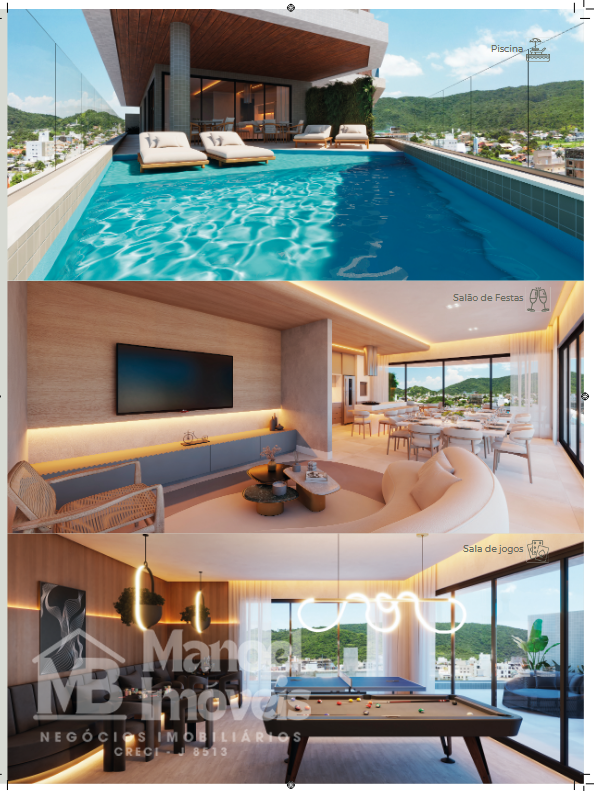 Em anexo ao apartamento, o condomínio entrega lazer completo: piscina convidativa, academia equipada, salão de festas, salão de jogos — tudo para aproveitar ao máximo cada momento. E ainda: 2 vagas de garagem privativas, área de serviço independente, lavabo e todo o conforto que você merece.